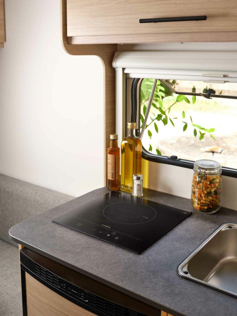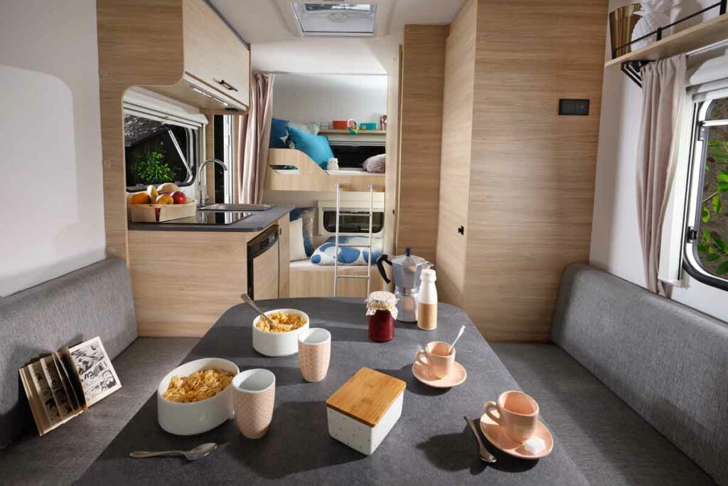 Nuova roulotte familiare 4 posti con un PTAC di soli 750 kg, dotata di attrezzature 100% elettriche. Inoltre, offre in esclusiva – e di serie – un nuovissimo concetto di connettività.