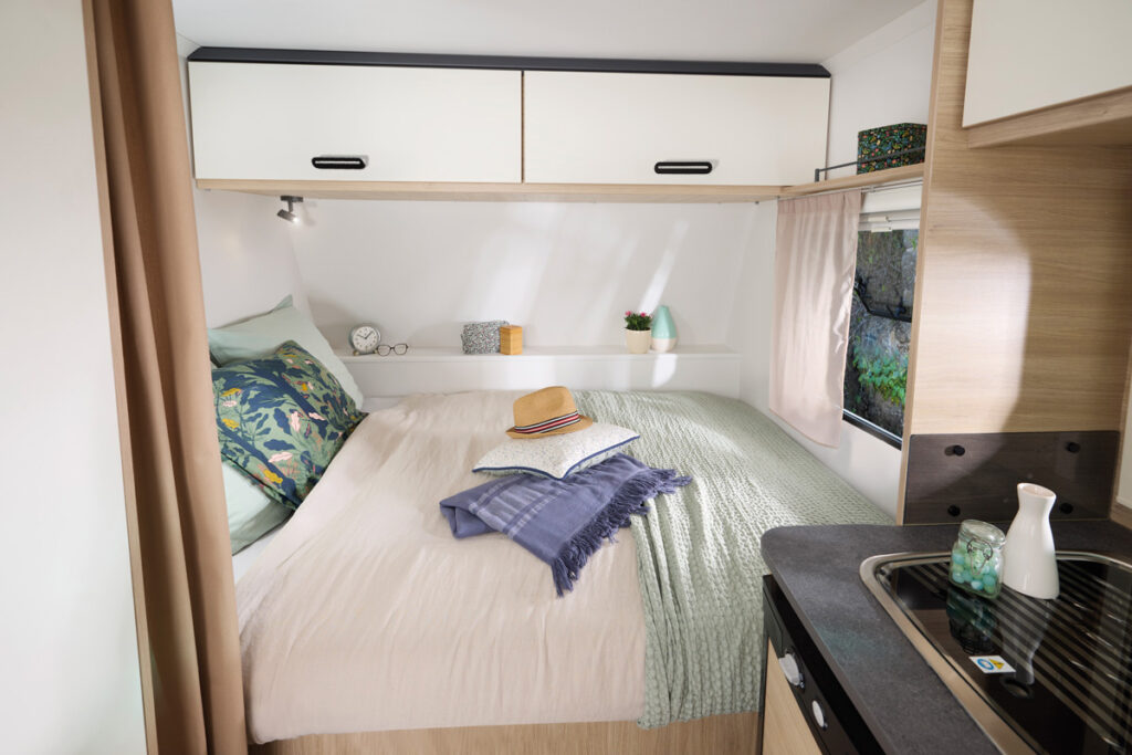 Con i suoi due letti a castello, il grande letto fisso anteriore e una dinette convertibile, la 470PE offre una vera soluzione familiare. Ben organizzata e ben attrezzata, consente di viaggiare in più persone mantenendo uno spazio abitativo piacevole e pratico nella vita quotidiana.